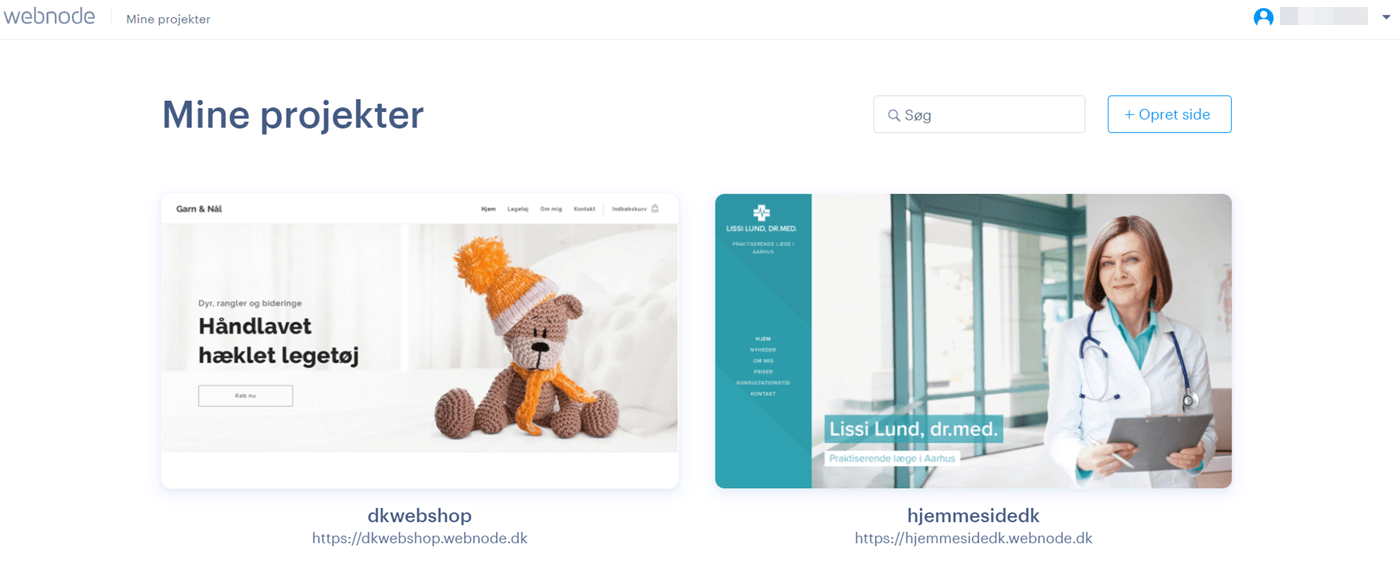 1. På www.webnode.dk, klik på knappen Log ind.