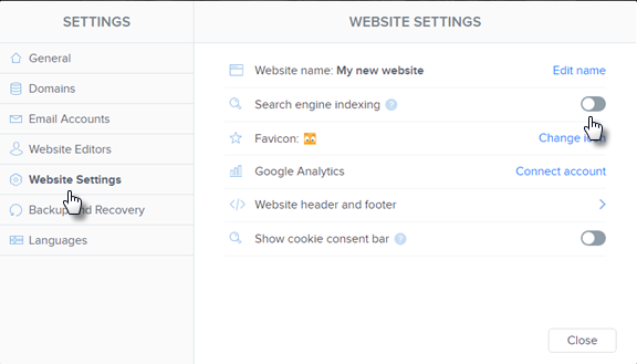 2. Under HJEMMESIDE INDSTILLINGER , klik på søgemaskineindeksering.