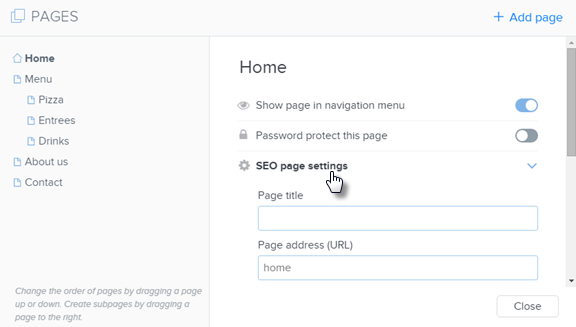 3. Vælg den side du ønsker at tilføjedin widget til og klik på SEO sideindstillinger.