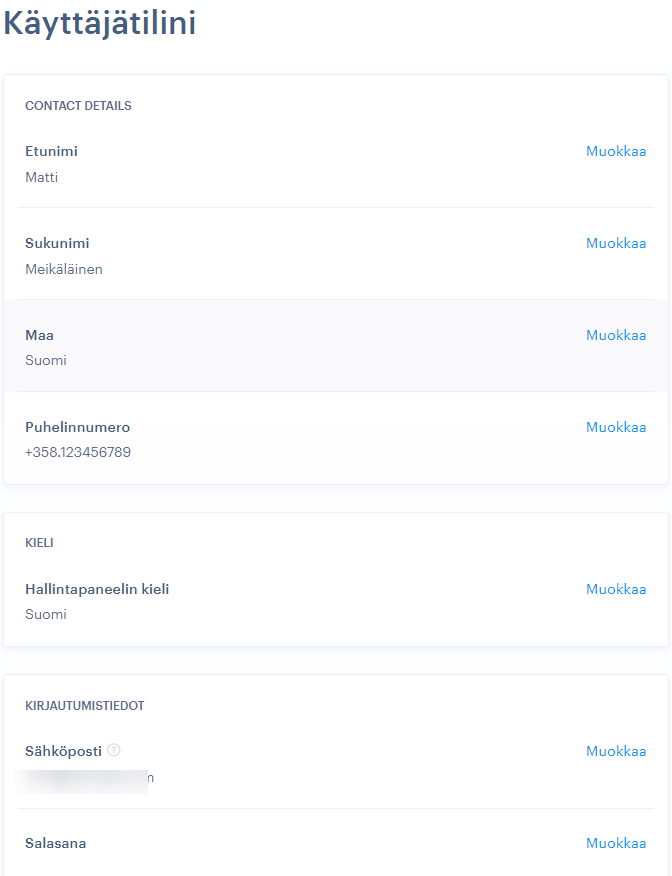 Kuinka muutan käyttäjätilini tietoja