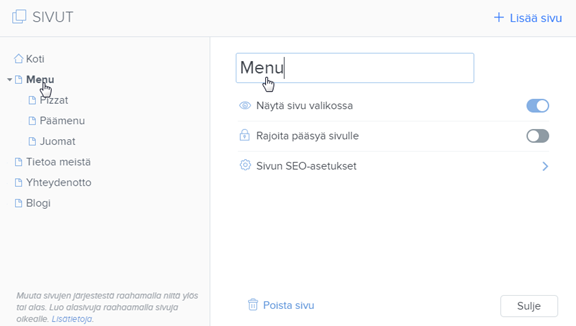 - Valitse sivu jonka tahdot nimetä uudelleen. Klikkaa sivun nimeä ja syötä uusi nimi.