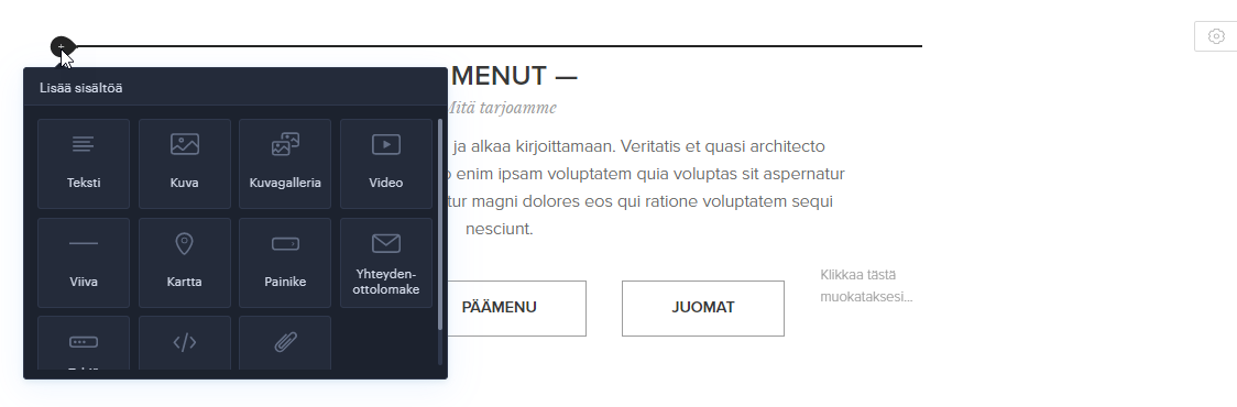 1. Aseta hiiresi osioon niin, että plus painike, jota painamalla voit lisätä uutta sisältöä ilmestyy näkyviin.