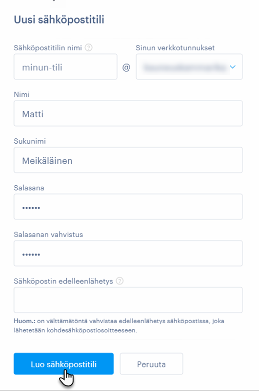 3. Toinen tapa on suoraan kotisivun Hallintapaneelin kautta Sähköpostitilit