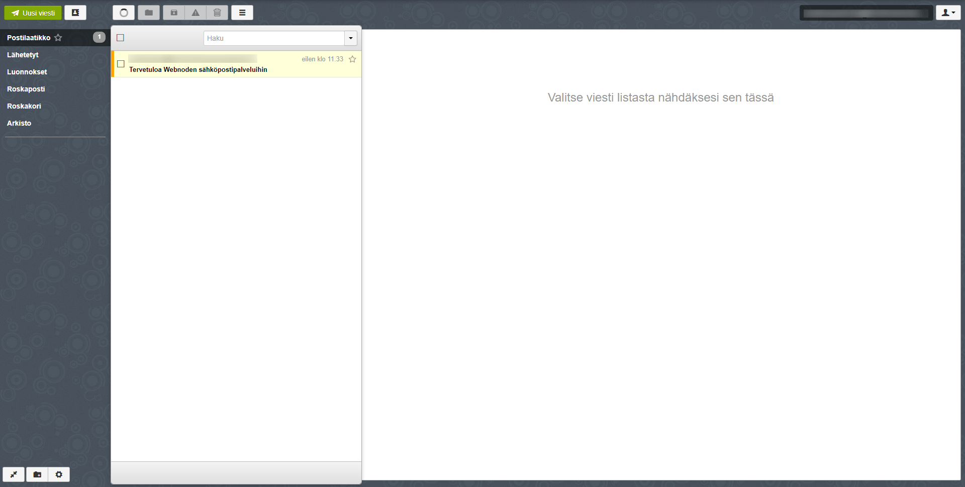 Kirjaudu sisään Webnoden postilaatikkoon käyttämällä uutta sähköpostiosoitetta, jonka olet luonut verkkotunnuksellesi, ja siihen liittyvää salasanaa.
