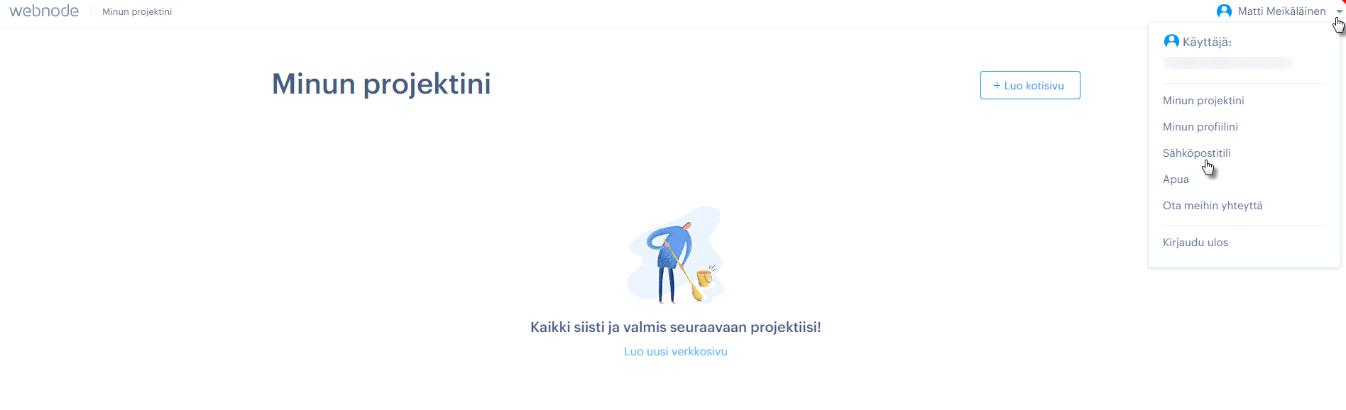 3. Minun Projektini -sivulla klikkaa Sähköpostitili oikeassa yläkulmassa.
