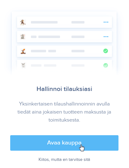 3. Seuraavaksi näet lyhyet ohjeet, miten verkkokauppa luodaan. Klikkaa lopussa Avaa kauppa.