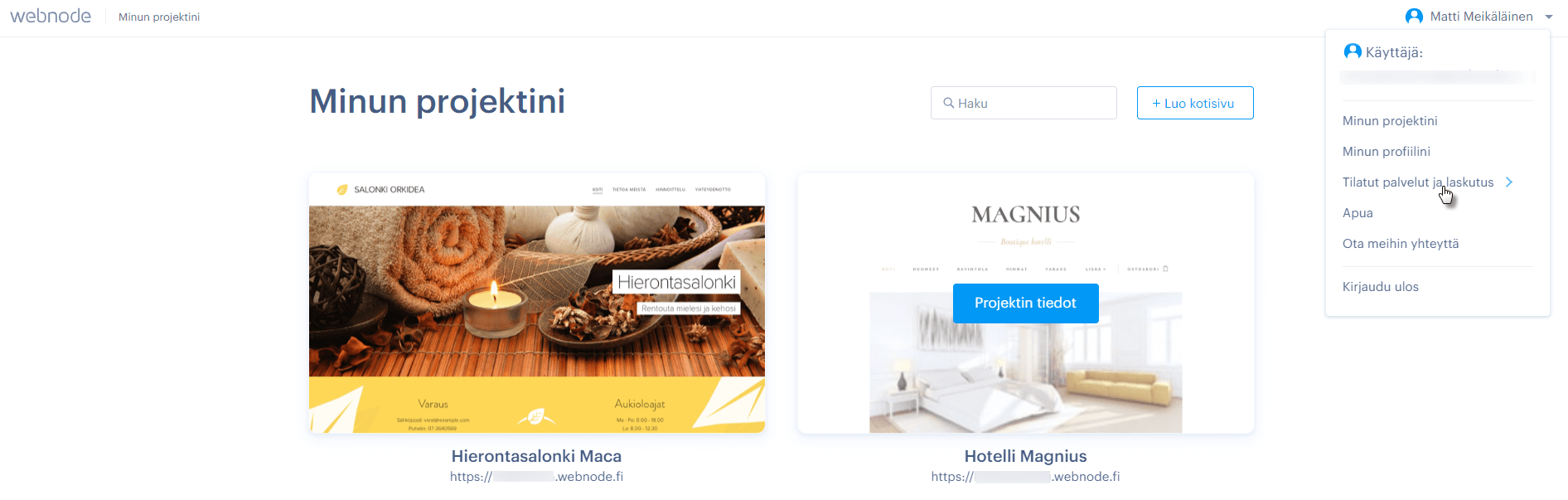 VINKKI: Jos haluat saada kuitin (maksutiedot) verkkotunnuksen tai Premium-palveluiden uusimisesta, kirjaudu sisään Webnodeen. Voit uusia palvelut suoraan projektisi hallintapaneelista.