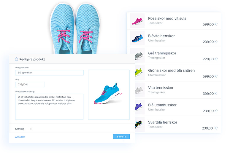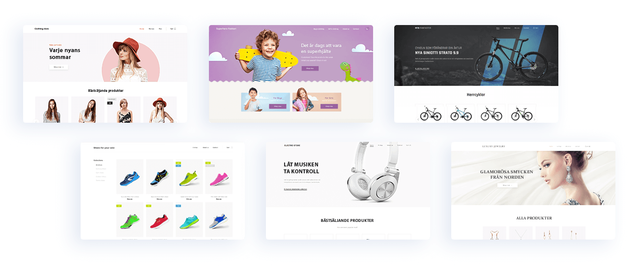 Våra färdigskapade mallar är redan fulla med produkter och texter, detta hjälper dig att lansera webbshopen fortare. Alla mallar kan enkelt skräddarsys efter din verksamhets behov.