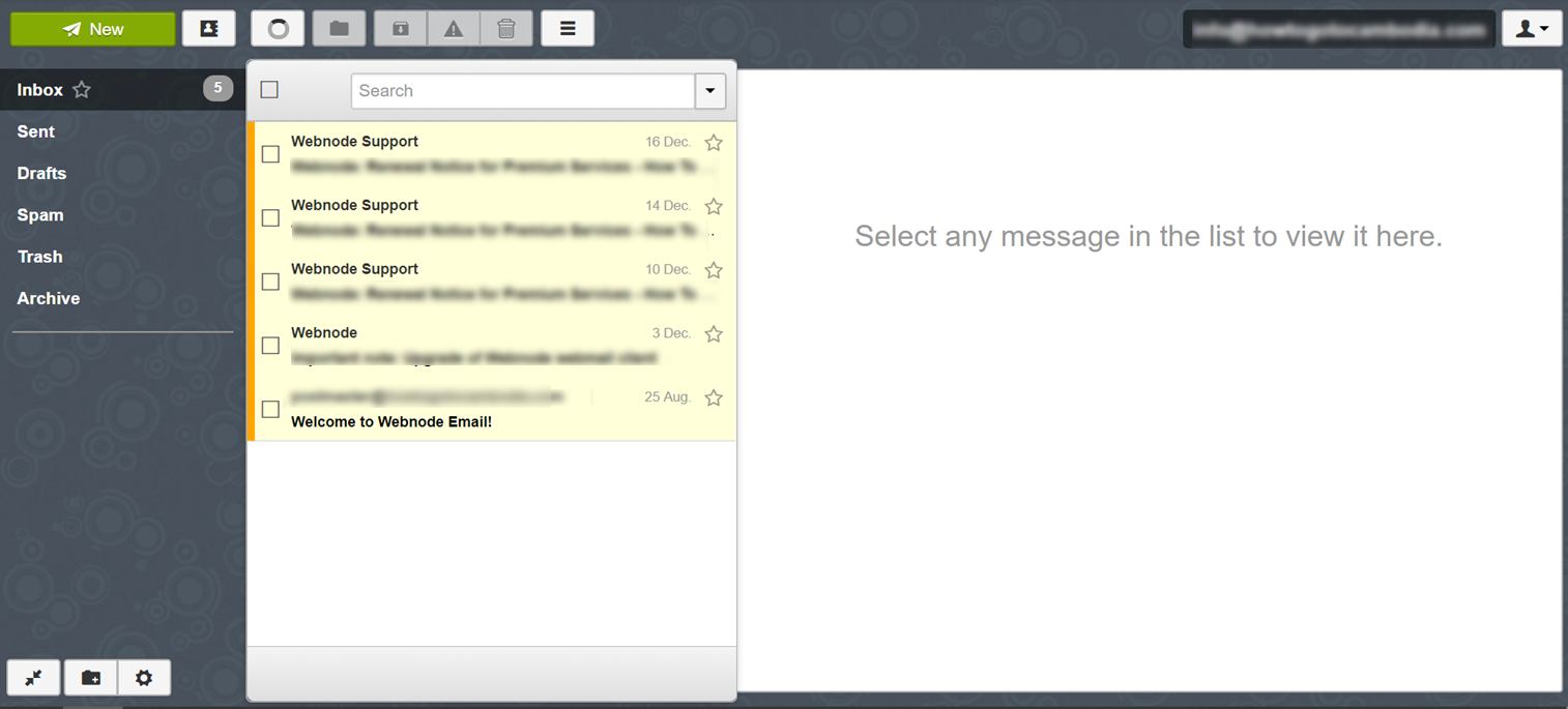 TIP: If you are using the new webmail, you can follow the guide How to Log in to Your Email Account for New Webnode Webmail. If you're unsure whether you are using the original or the new Webnode interface, you can find more information in the guide How to know if I'm using the new or original Webnode webmail.
