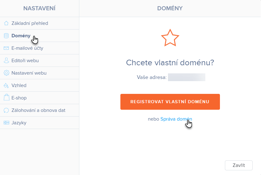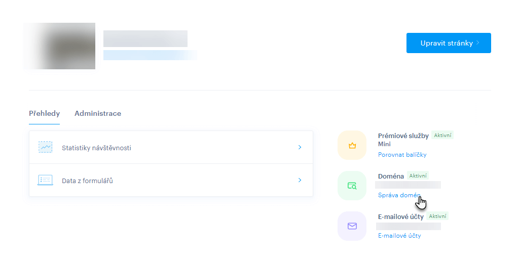 3. Zde dále v sekci Domény vyberte možnost Správa domén.