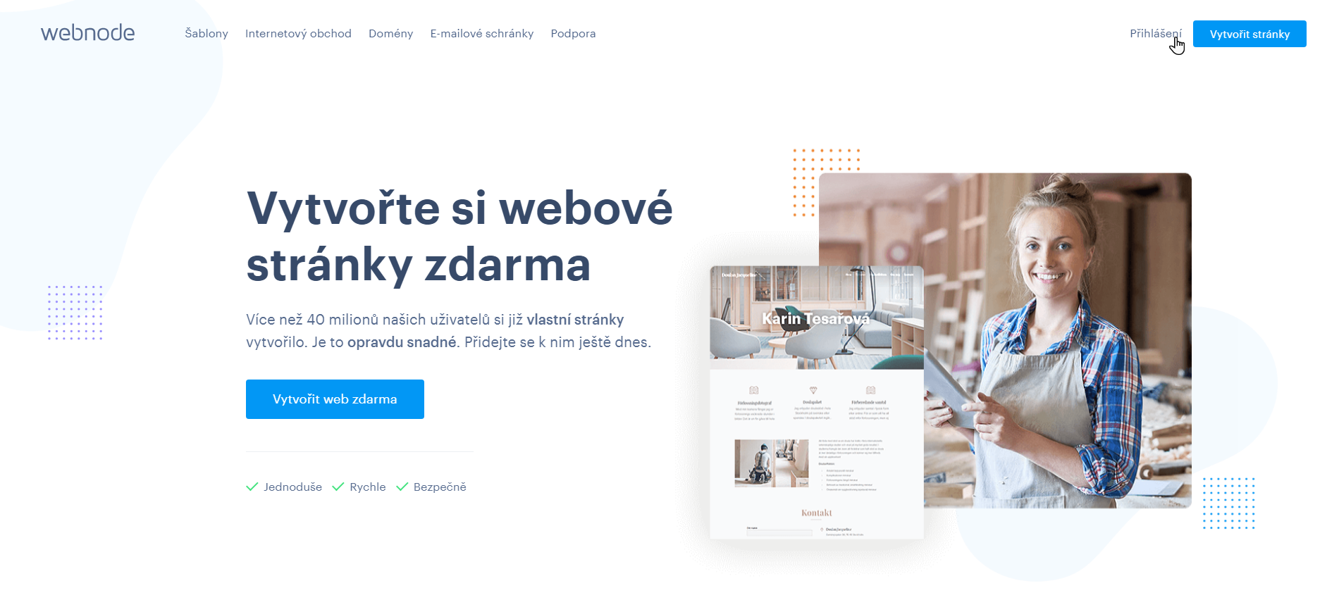 1. Následně přejděte na www.webnode.com/cs/ a klikněte na tlačítko Přihlášení.
