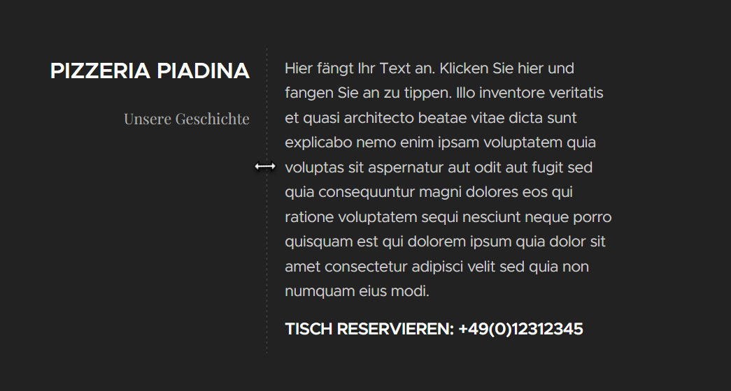 1. Klicken Sie mit der Maus auf den Inhaltsblock und ziehen Sie ihn an eine beliebige Stelle auf der Seite. Die Stelle, an der der Block platziert werden kann, ist mit einer orangefarbenen Linie markiert.