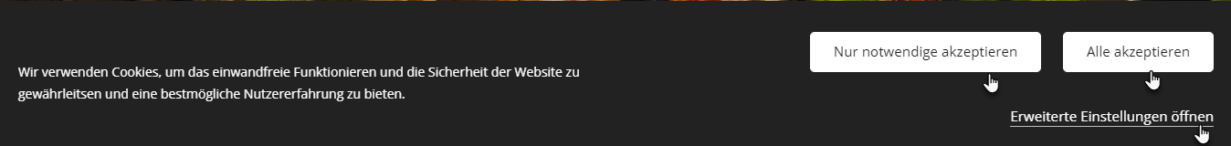 TIPP: Standardmäßig wird die Leiste beim ersten Besuch der Website angezeigt. Nach dem Empfang von Cookies durch den Nutzer wird die Zustimmung erst angezeigt, wenn die Cookies im Browser des Besuchers/der Besucherin gelöscht werden.