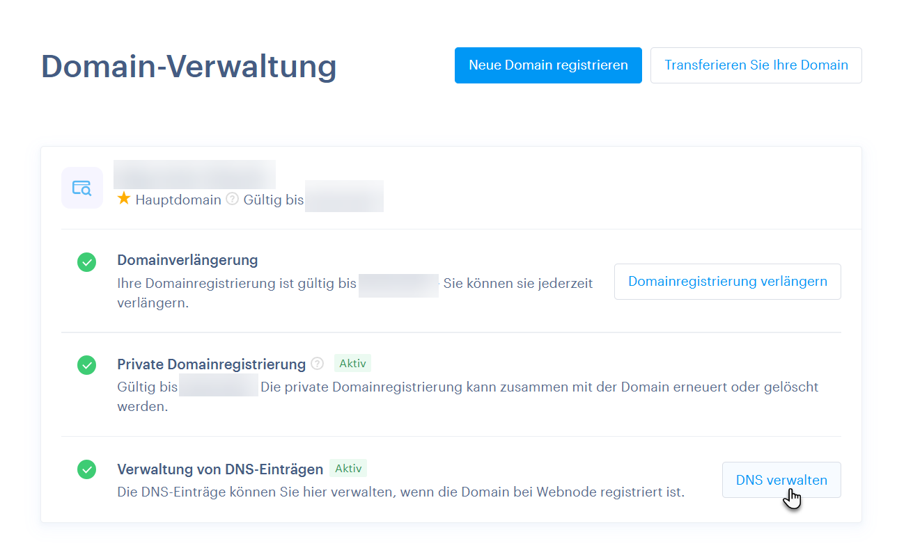 TIPP: Sie können Ihre eigene Domain registrieren oder unter unsere Verwaltung übertragen. Weitere Informationen finden Sie in den Anleitungen Eine eigene Domain registrieren und Eine Domain übertragen.