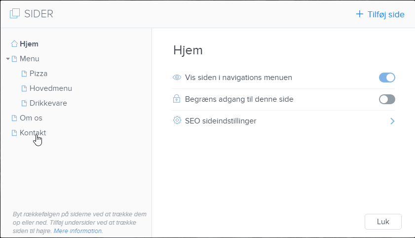 2. Indstil rækkefølgen på dine sider ved at trække dem op eller ned i listen.