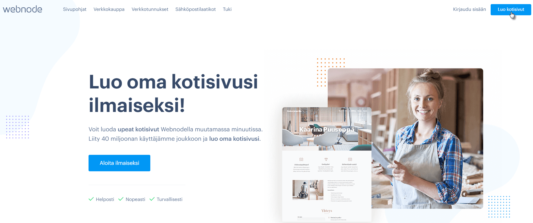 1. Mene sivulle www.webnode.fi ja klikkaa Luo kotisivut -painiketta.