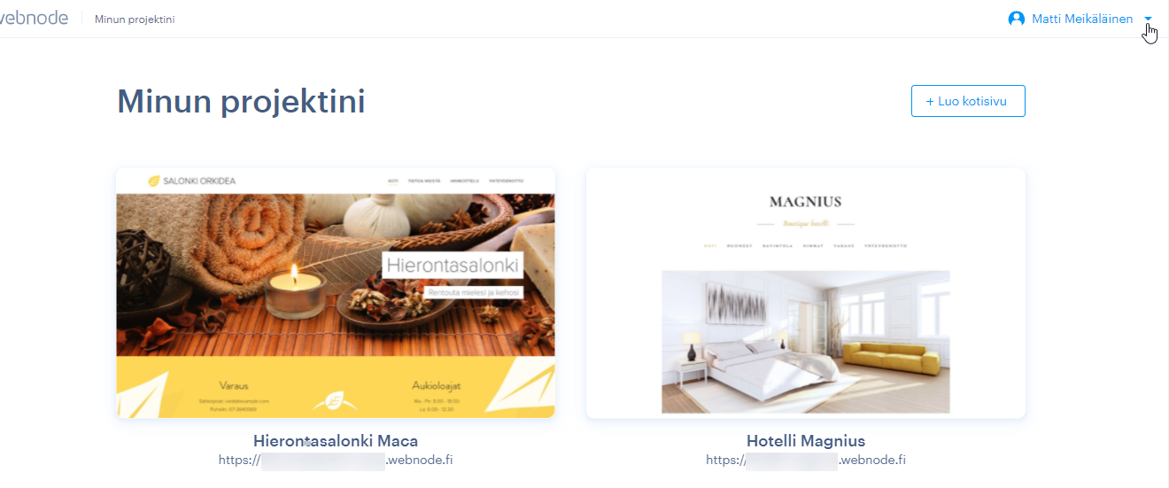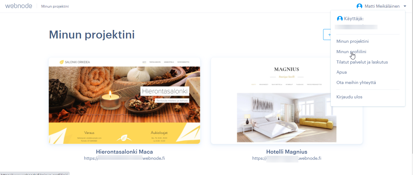 - Mene Minun Projektini sivulle ja klikkaa VALIKKO-painiketta sivun oikeassa ylälaidassa.