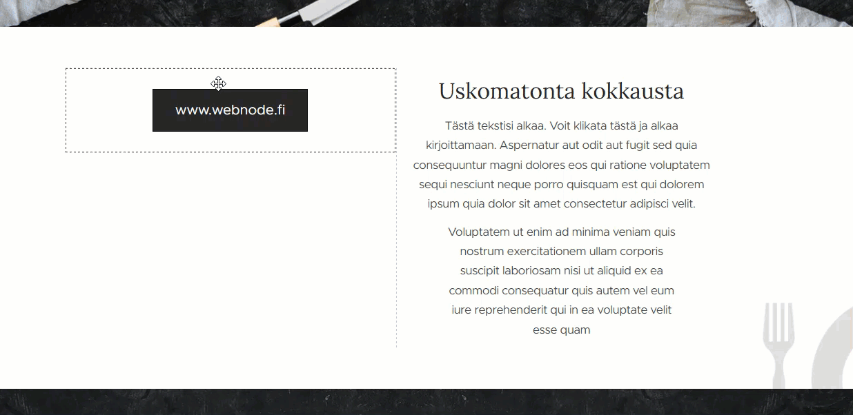1. Klikkaa sisältölohkoa hiirellä ja vedä se mihin tahansa sivun osaan. Paikka, johon lohkon voi sijoittaa, on merkitty oranssilla viivalla.