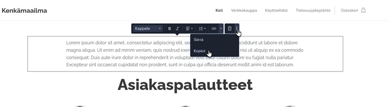 VINKKI: Voit kopioida sisältöblokkeja tavallisiin sivuihin, tuotteisiin tai blogiartikkeleihin.