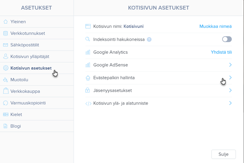 2. Klikkaa Kotisivun asetukset -osiossa Evästepalkin hallinta.