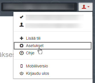Klikkaa oikeassa yläkulmassa olevaa tilikuvaketta ja valitse Asetukset.