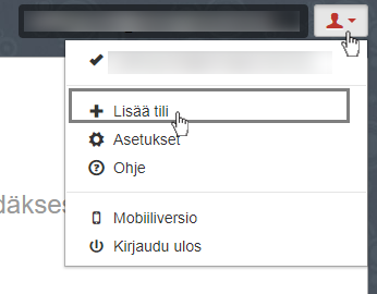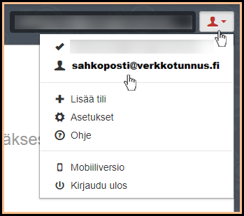 Voit hallita muitakin verkkotunnuksellesi luotuja sähköpostitilejä. Voit lisätä uuden tilin klikkaamalla oikeassa yläkulmassa olevaa tilin kuvaketta ja valitsemalla Lisää tili.