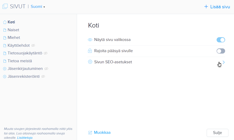 4. Klikkaa kotisivueditorissa SIVUT.