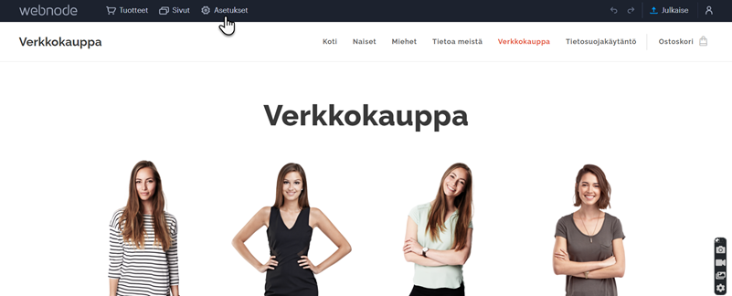 1. Kirjaudu sisään editoriin ja klikkaa painiketta ASETUKSET sivun vasemassa yläkulmassa.