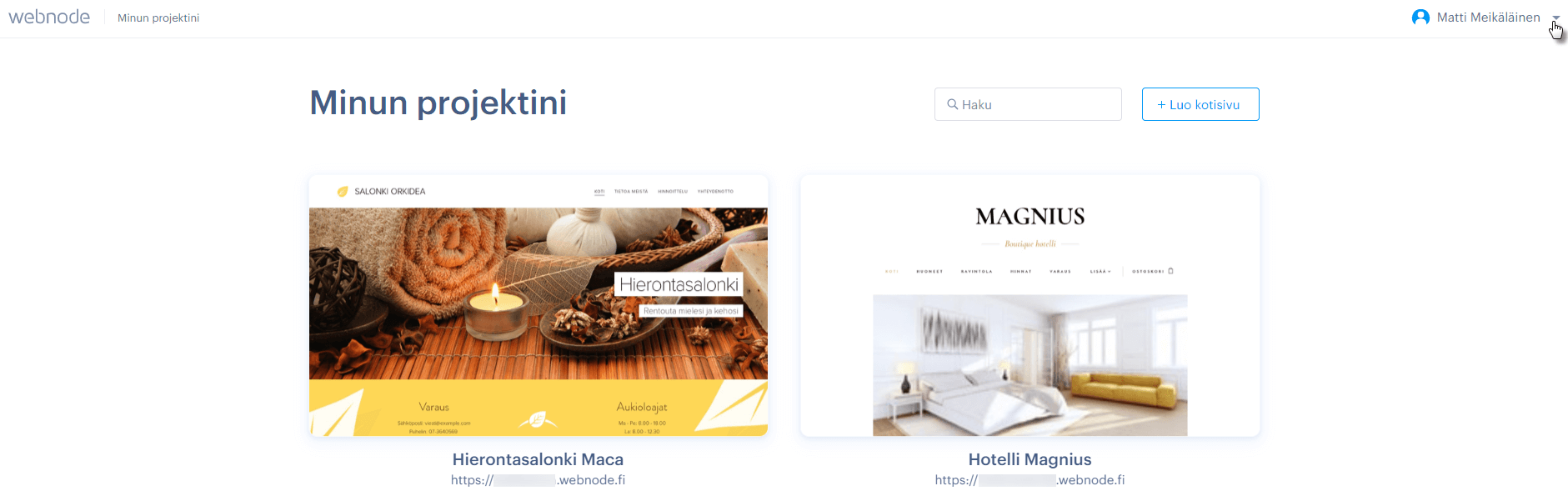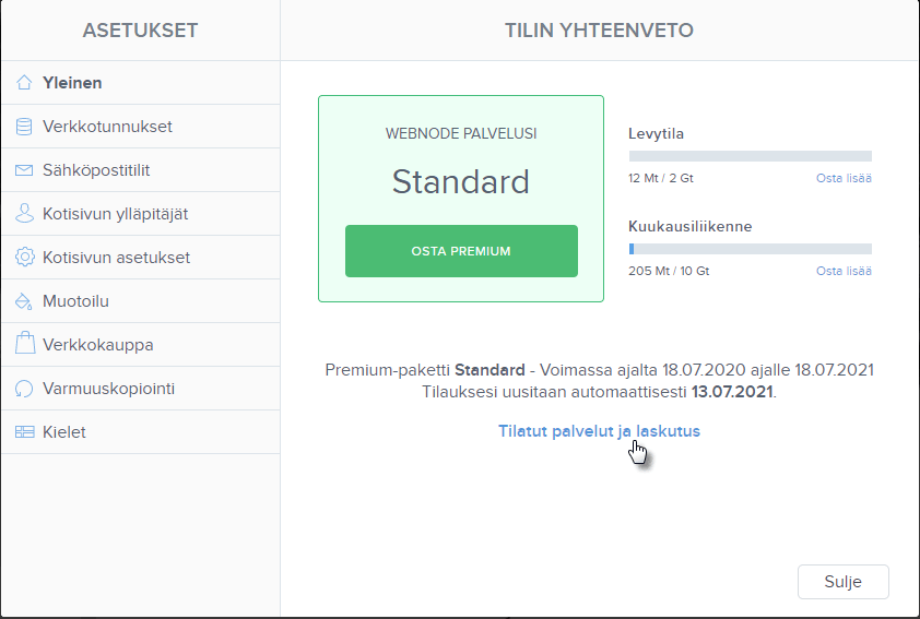 VINKKI: Jos haluat saada kuitin (maksutiedot) verkkotunnuksen tai Premium-palveluiden uusimisesta, kirjaudu sisään Webnodeen. Voit uusia palvelut suoraan projektisi hallintapaneelista.