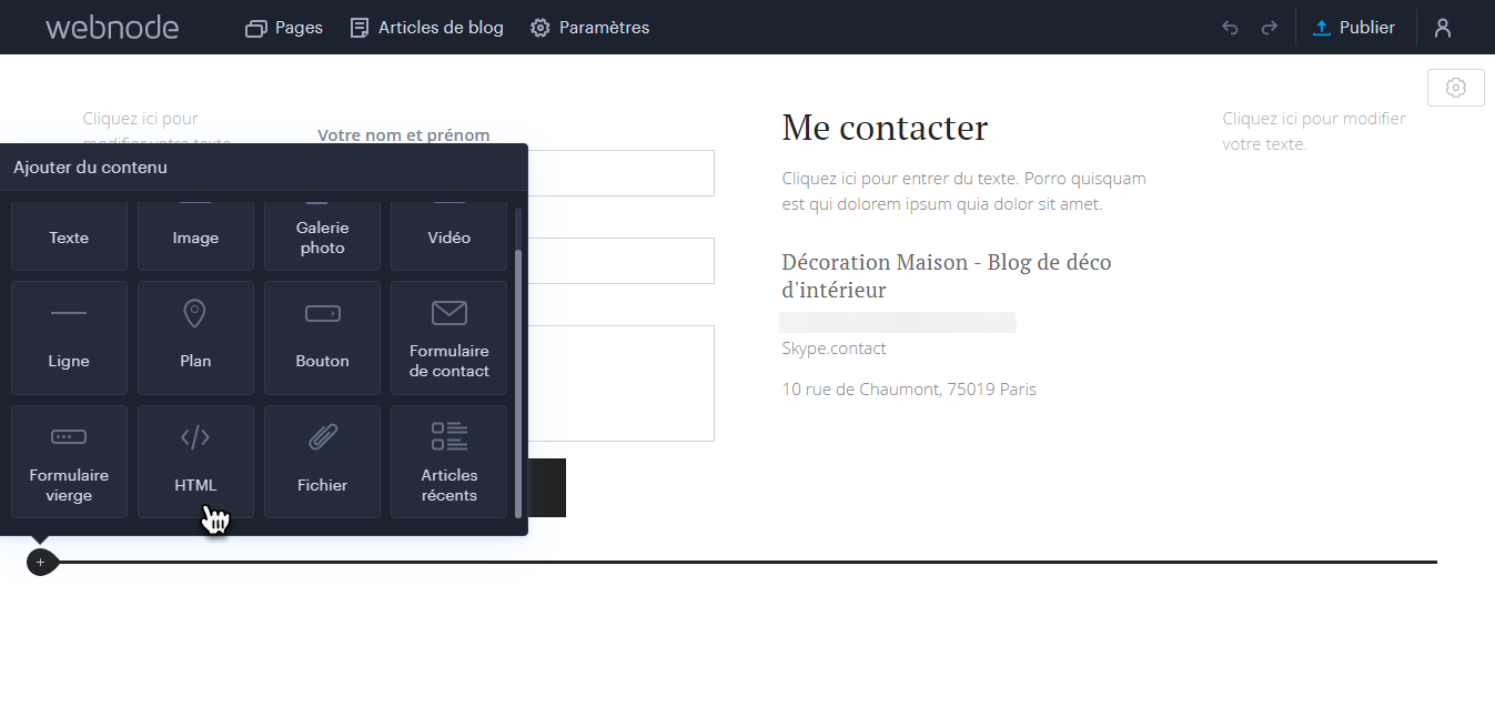 8. Allez maintenant dans l'éditeur Webnode, sélectionnez l'endroit où vous voulez insérer le forum de discussion et ajoutez le contenu HTML.
