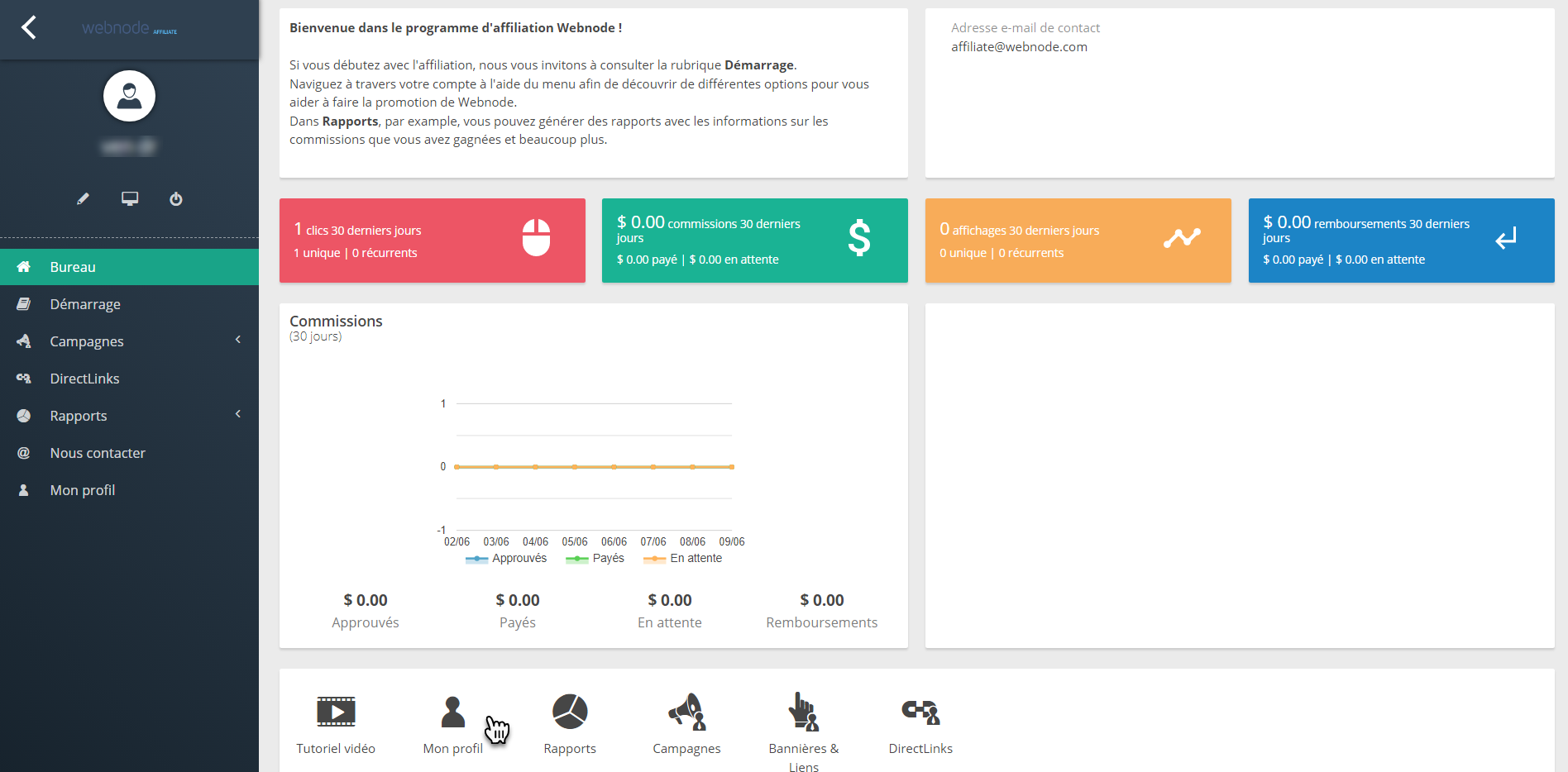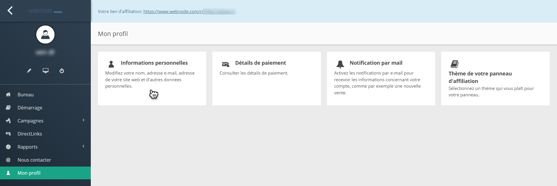 1. Connectez-vous à votre compte affilié et cliquez sur Mon profil en bas de la page.