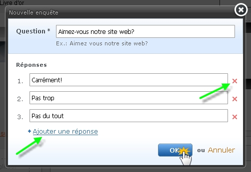 Pour ajouter une réponse, cliquez sur « Ajouter une réponse ». Pour la supprimer, cliquez sur le croix rouge à côté de la réponse.