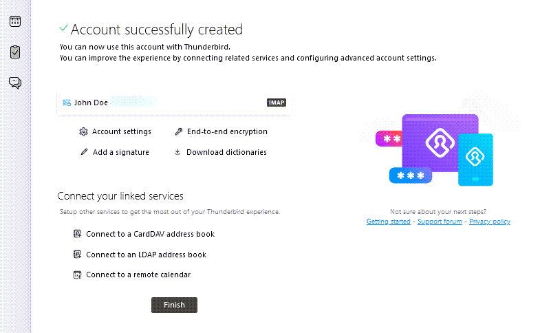6. Une fois la configuration terminée, un message apparaîtra indiquant que le compte a été créé avec succès.