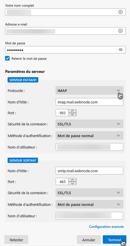 Ajout de Webnode Webmail à Mozilla Thunderbird.