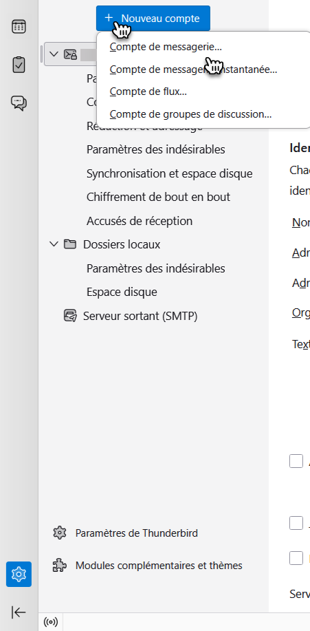 Pour configurer le client de messagerie Mozilla Thunderbird, procédez comme suit :