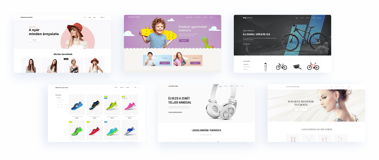 Sablonjaink már tartalmazzák a termékeket és szövegeket, amelyek segítenek még gyorsabban megnyitni webáruházad. Minden sablon könnyen személyre szabható.