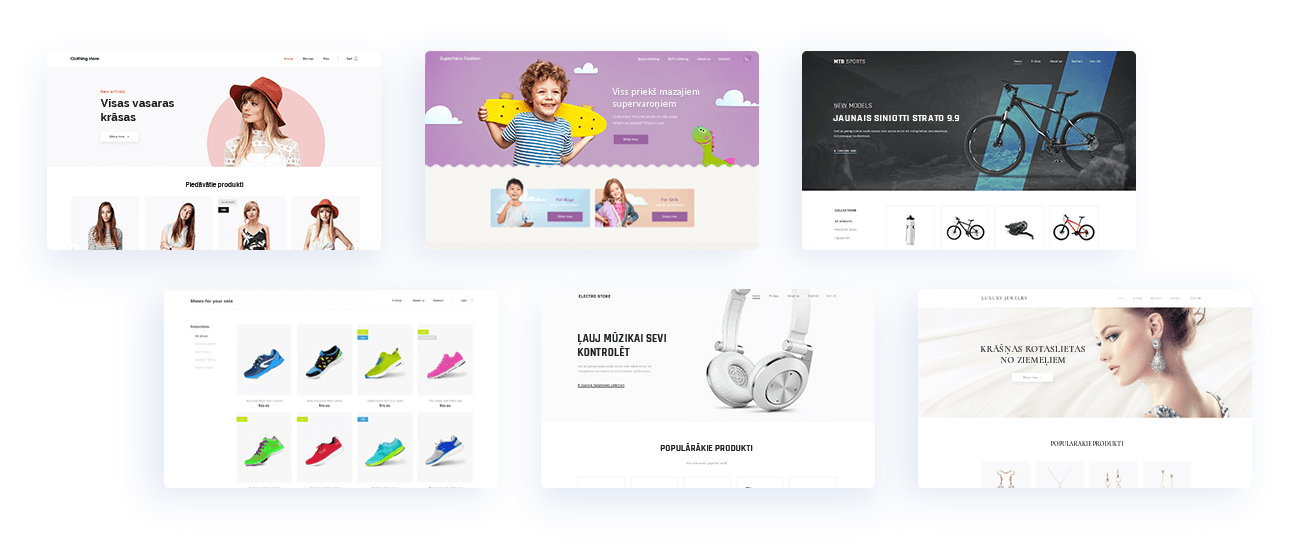 Mūsu veidnes ir izveidotas ar produktiem un tekstiem, kas palīdzēs izveidot interneta veikalu vēl ātrāk. Visas veidnes var tikt pielāgotais Tavām biznesa vajadzībām.