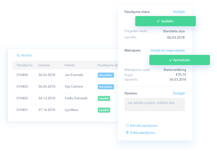 Tu vari viegli pārzināt savus pasūtījumus izmantojot mūsu vienkāršo pasūtījumu pārvaldību. Ātri uzzini, kuri pasūtījumi ir apmaksāti un cik daudz produktus nepieciešams izsūtīt.