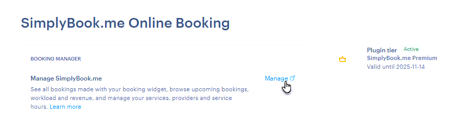 Complete instructions for setting up the service can be found in our article How to set up the SimplyBook.me service, and information on working with bookings themselves can be found in the article How bookings work with SimplyBook.me Online Booking. Details on adding the service directly to your website can be found in the article How to add a SimplyBook.me Online Booking form to your website. Here is some general help directly from SimplyBook.me