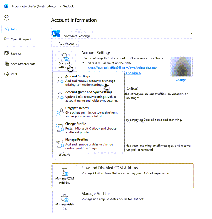 2. Click Account Settings, then select Account Settings… again.