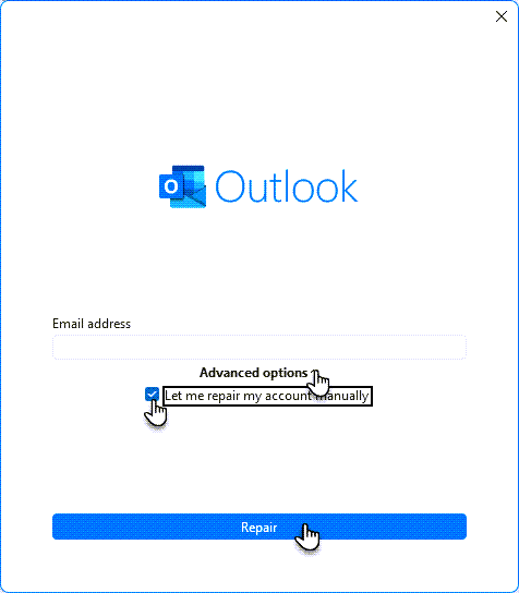 4. Expand the Advanced options section and check Let me repair my account manually. Continue by clicking Repair.