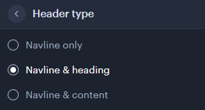 Here you can change the type of header. Available options include Navline only, Navline & heading, or Navline & content. The available settings differ depending on the header type.