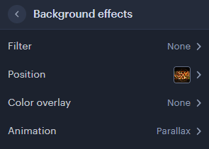 If you set a non-solid background for the navigation bar and/or section, you can also set background effects, such as filter, image position, color overlay, or animation.