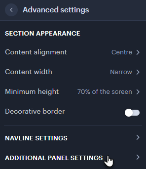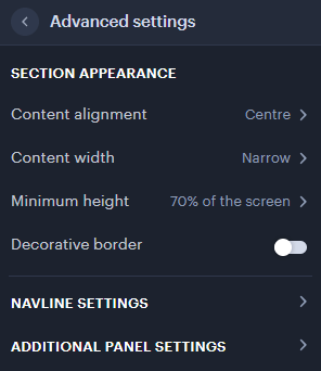 Similarly, Section background settings (header section) can be applied only when the header type Navline & content or Navline & content is selected.