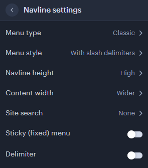 WARNING: For the Navline only type, access this menu via Advanced settings.