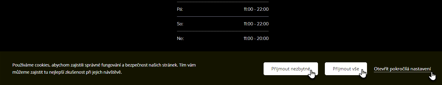TIP: Lišta se standardně zobrazí při první návštěvě stránek. Po přijmutí cookies ze strany uživatele se nebude souhlas zobrazovat až do promazání cookies v návštěvníkově prohlížeči.