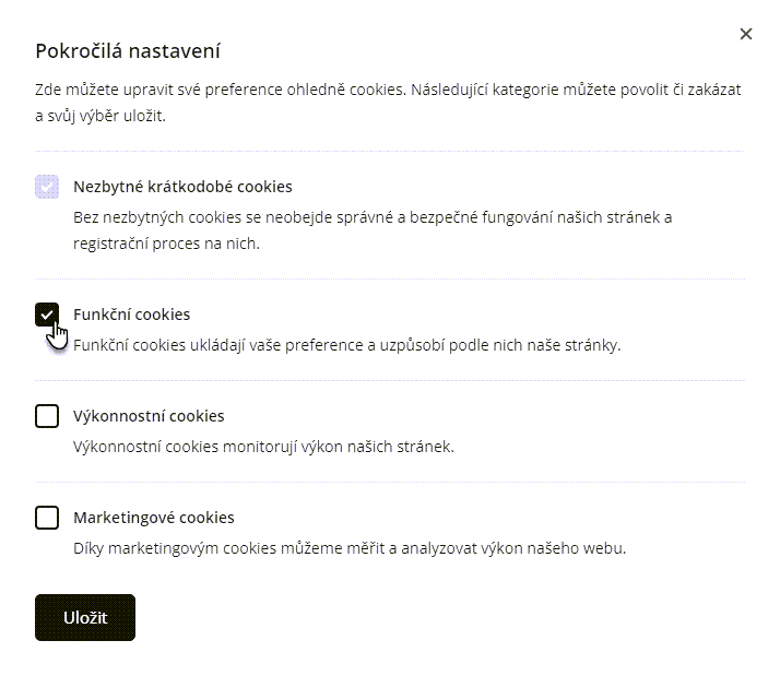 Nezbytné cookies potřebuje prohlížeč či aplikace k úplnému a správnému provádění základních funkcí.