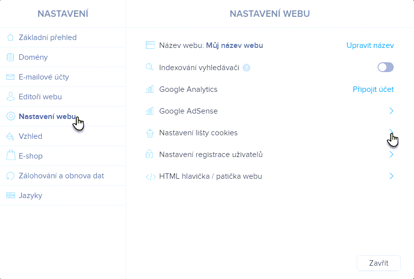 2. V části Nastavení webu klikněte na Nastavení lišty cookies.