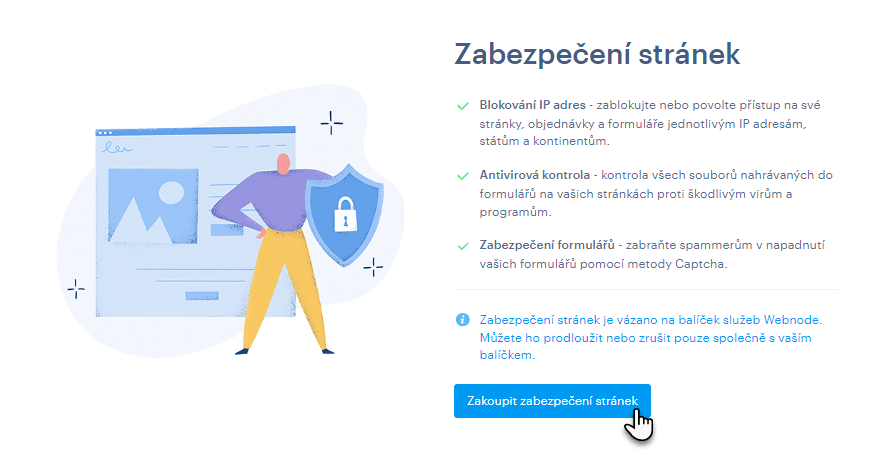 Prémiové zabezpečení stránek lze zakoupit: