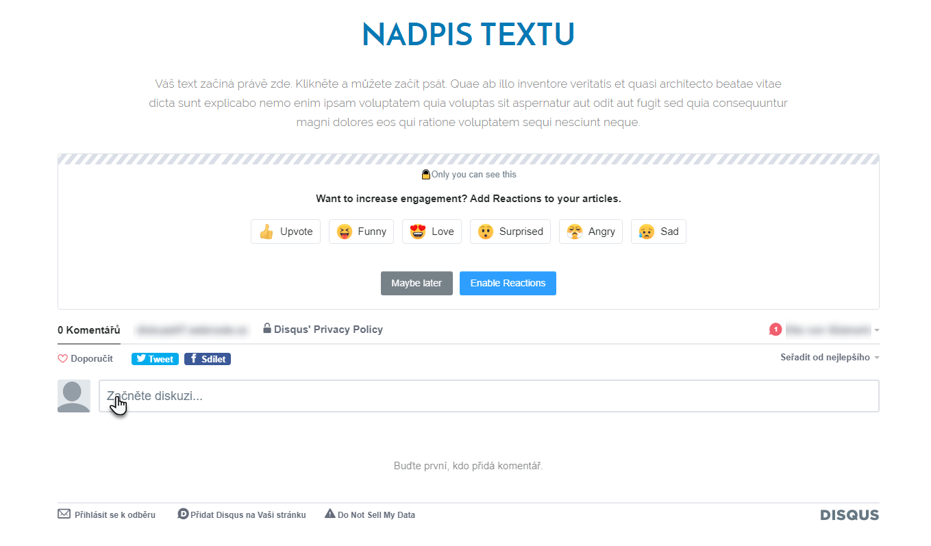 Jak přidat diskuzi prostřednictvím Disqus